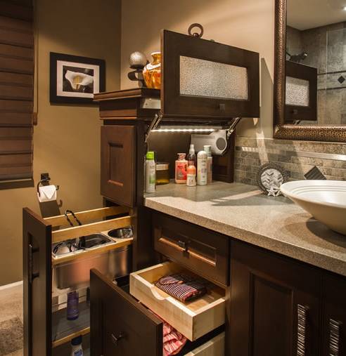 大容量、多格子的浴室柜。▼
